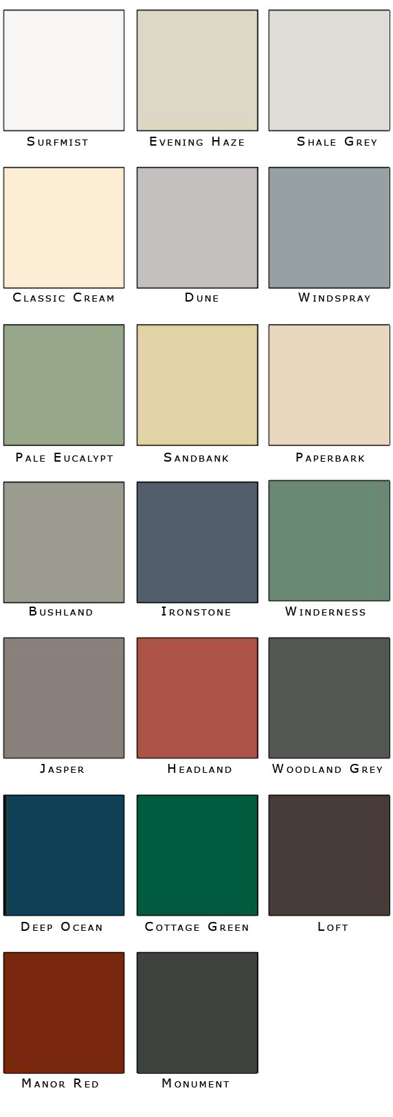 When you buy a shed with Affordable Sheds and Garages you can choose any of the following Colorbond colours to tailor your shed. You can choose different colours for any of the following allowing you to get a shed that matches your house or other existing building if needed: